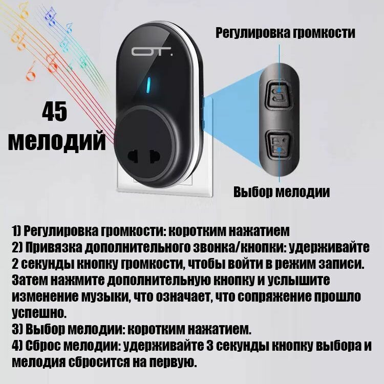 Звонок беспроводной сетевой 45 мелодий Орбита OT-HOC20 Черный интересное:
