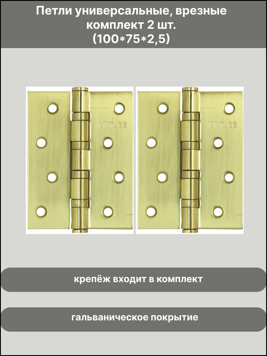 Петля дверная врезная универсальная 4BВ SB, 100х75х2.5, цвет золото, комплект 2 шт