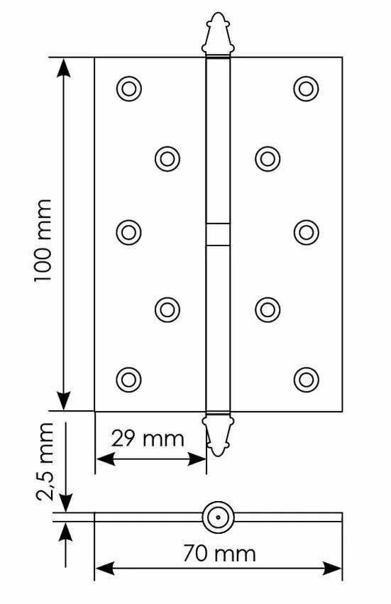 Петля разъемная MORELLI 100x70x2,5мм R бронза с коронкой