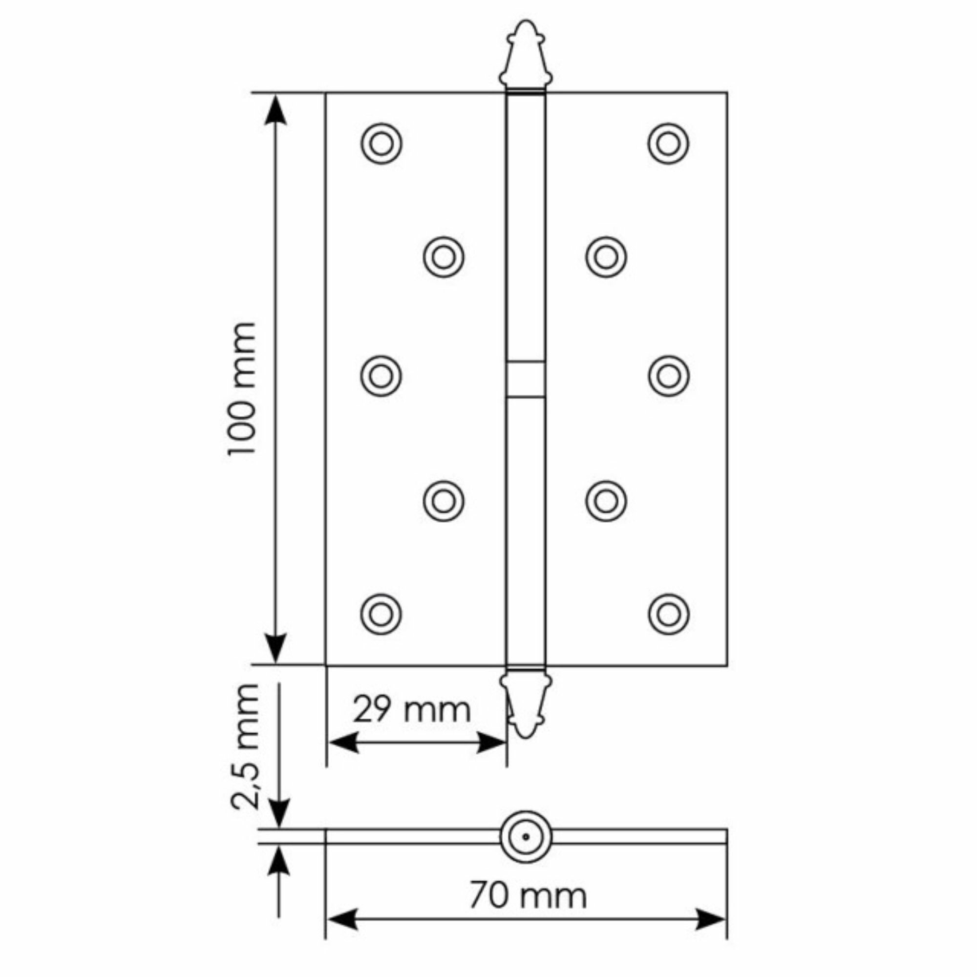 Петля разъемная MORELLI 100x70x2,5мм R бронза с коронкой
