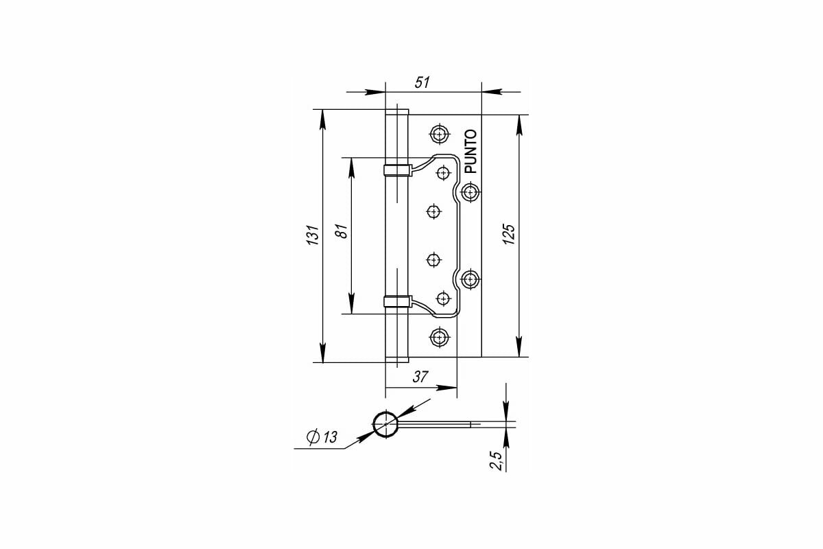 PUNTO Петля универсальная без врезки 200-2B 125x2,5 PN мат. никель 2 шт 35513 интересное: