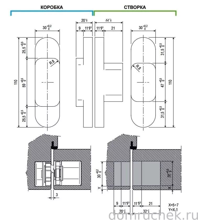 | Угол открывания двери | 180 град. |