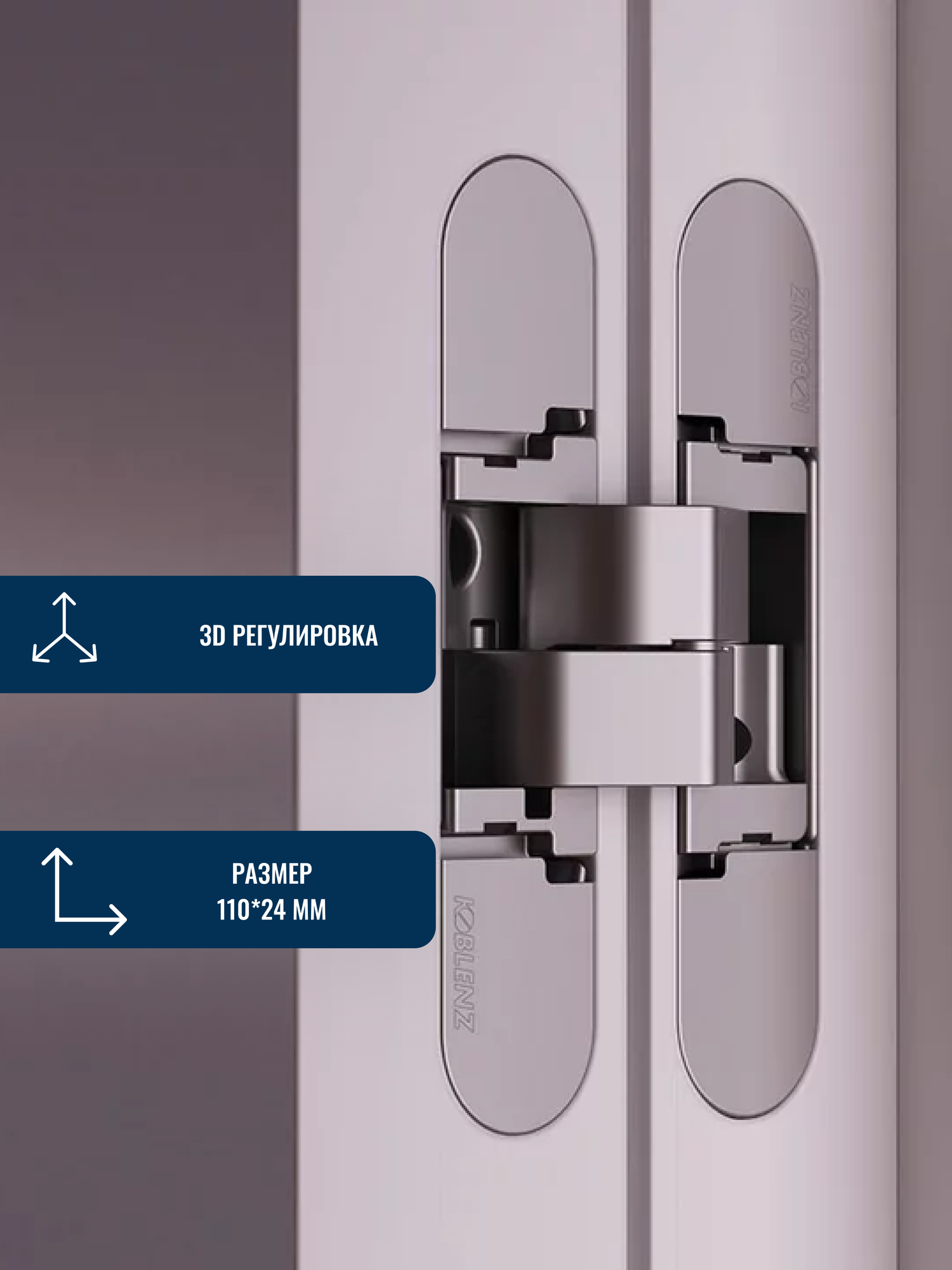 Петли дверные скрытые с 3d регулировкой KRONA KOBLENZ K1019 CS, хром матовый