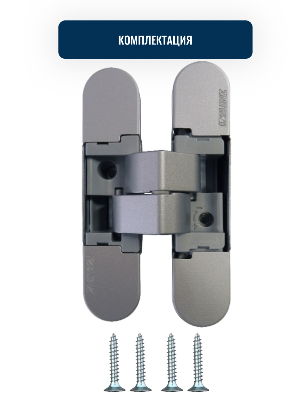 Петли дверные межкомнатные скрытые KRONA KOBLENZ K1019, универсальная, никель матовый