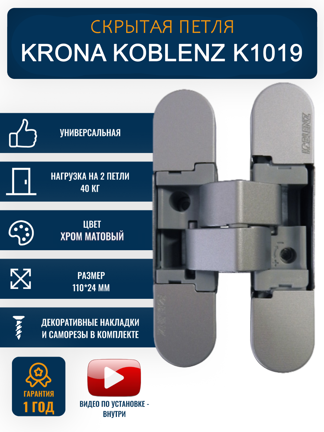 Купить Петли дверные межкомнатные скрытые KRONA KOBLENZ K1019 CS, хром матовый