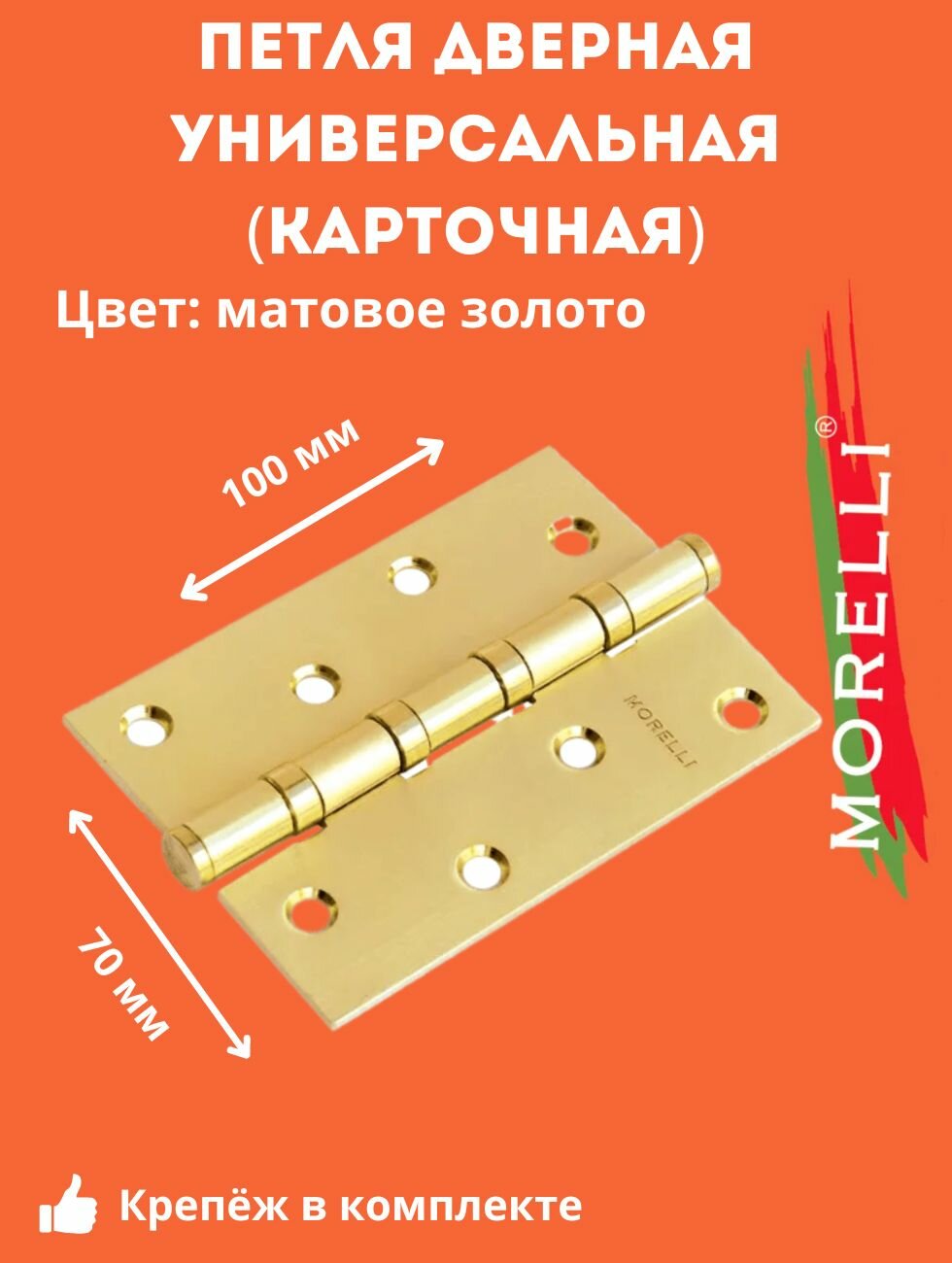 Петля MORELLI стальная универсальная MS 100X70X2.5-4BB SG Цвет - Матовое золото