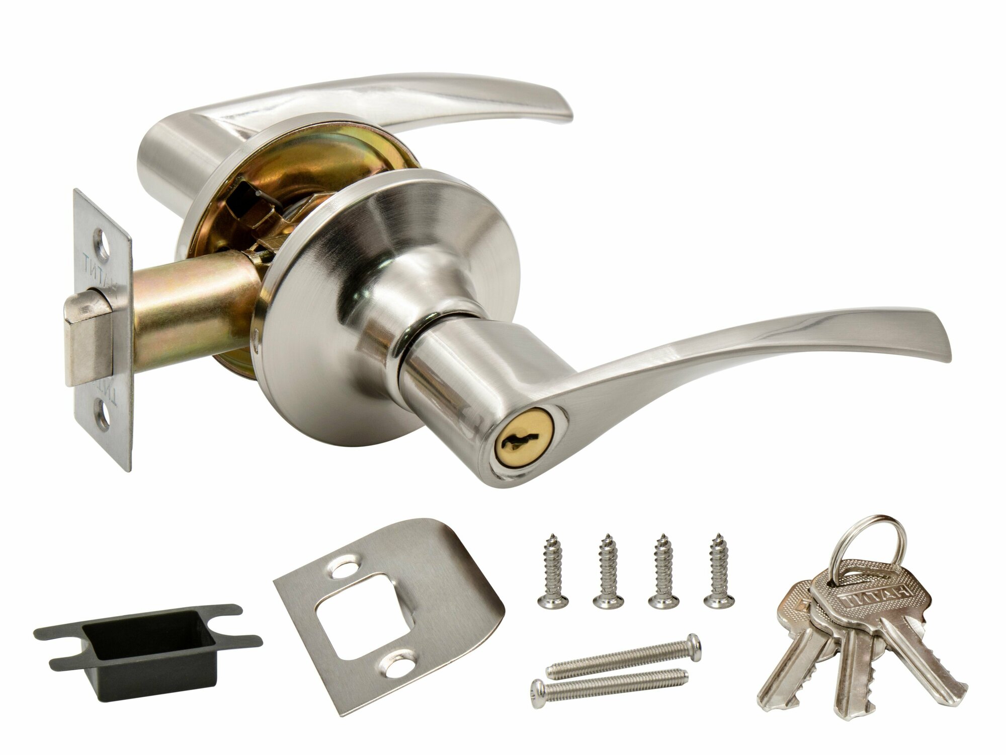 Ручка дверная межкомнатная с защелкой Титан 200-00 SN , ключ/фиксатор, Матовый хром интересное: