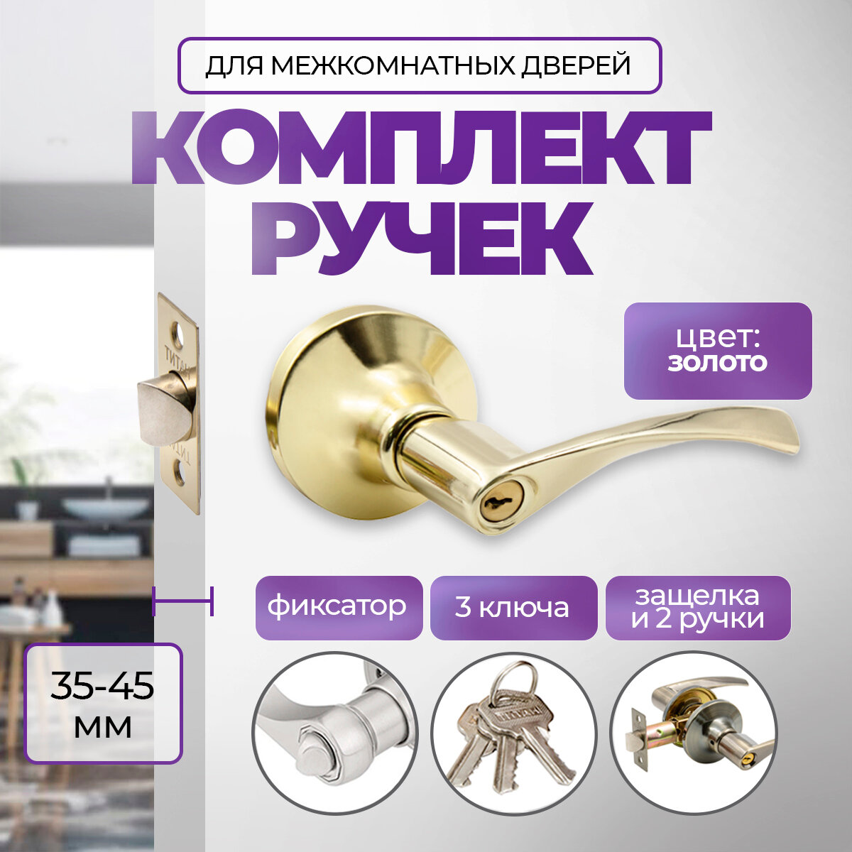 Ручка дверная межкомнатная с защелкой Титан 200-00 РВ , ключ/фиксатор, Золото интересное: