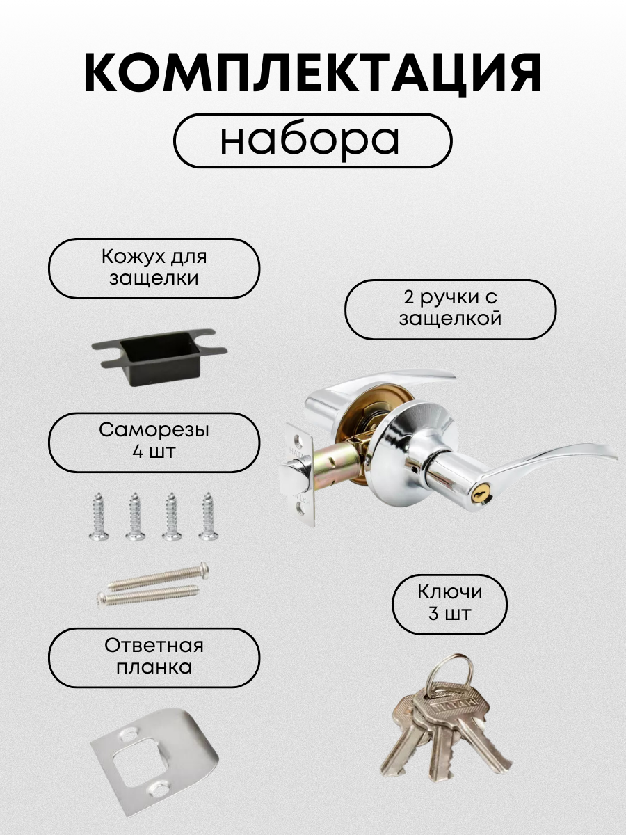 Ручка дверная межкомнатная с защелкой Титан 200-00 CP , ключ/фиксатор, Хром интересное: