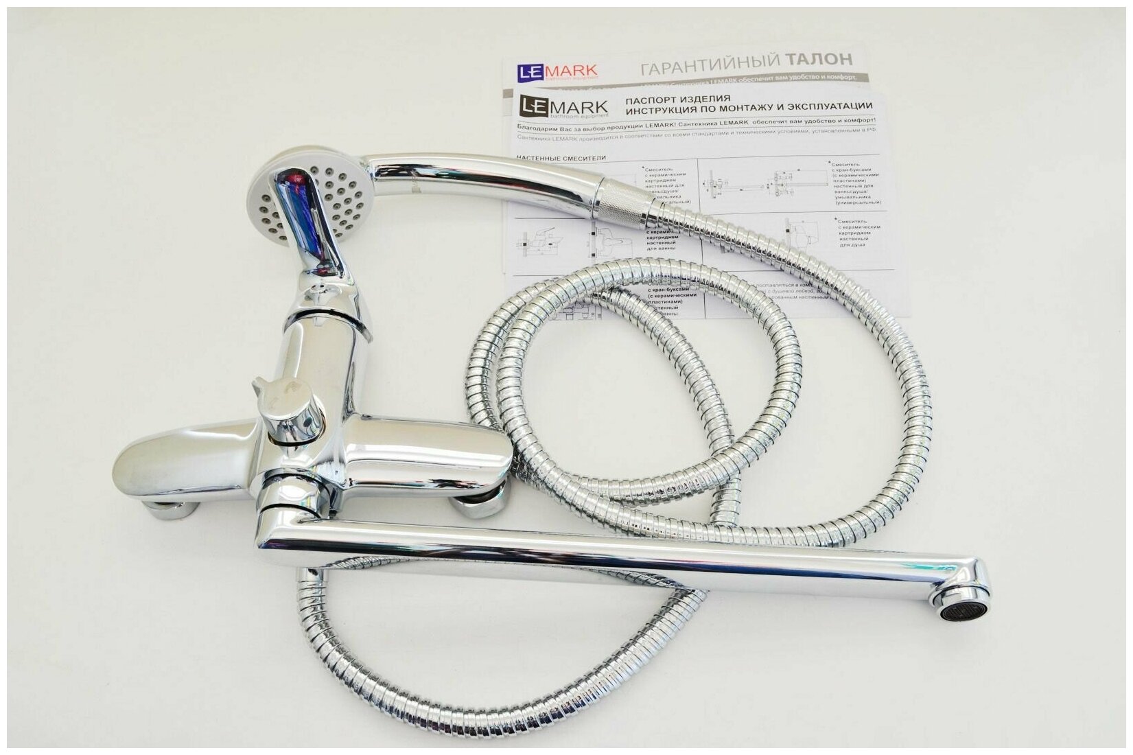 Смеситель для ванной с длинным поворотным изливом и душевой лейкой, шланг 1.5м в комплекте (Lemark LM1251C)