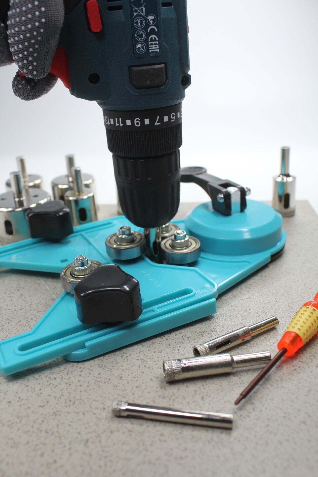 Купить Кондуктор и набор алмазных коронок + сверла по керамике