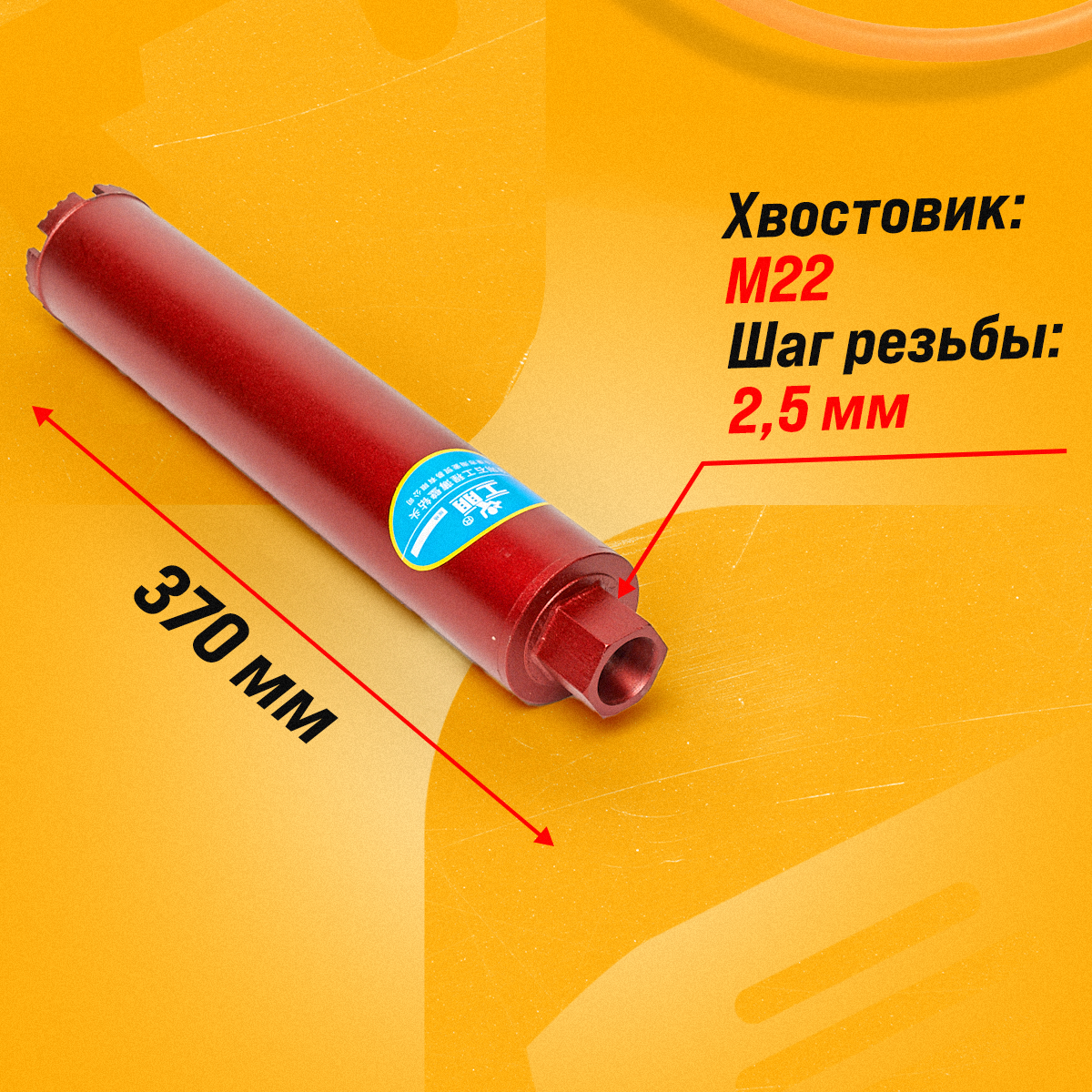 Коронка алмазная М22 40*370 мм мокрорез по бетону, кирпичу для сухого и мокрого бурения