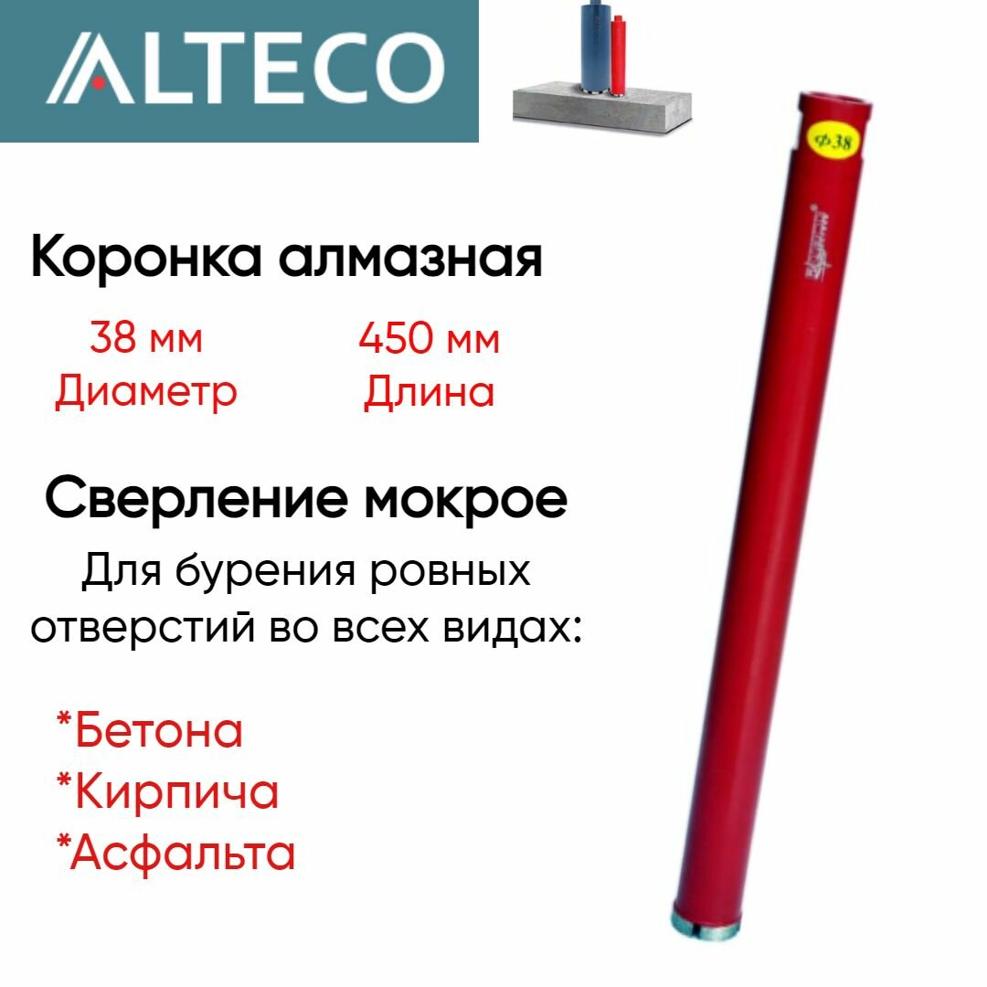 Купить Коронка алмазная ВТ (38х450 мм) ALTECO, арт. 13237
