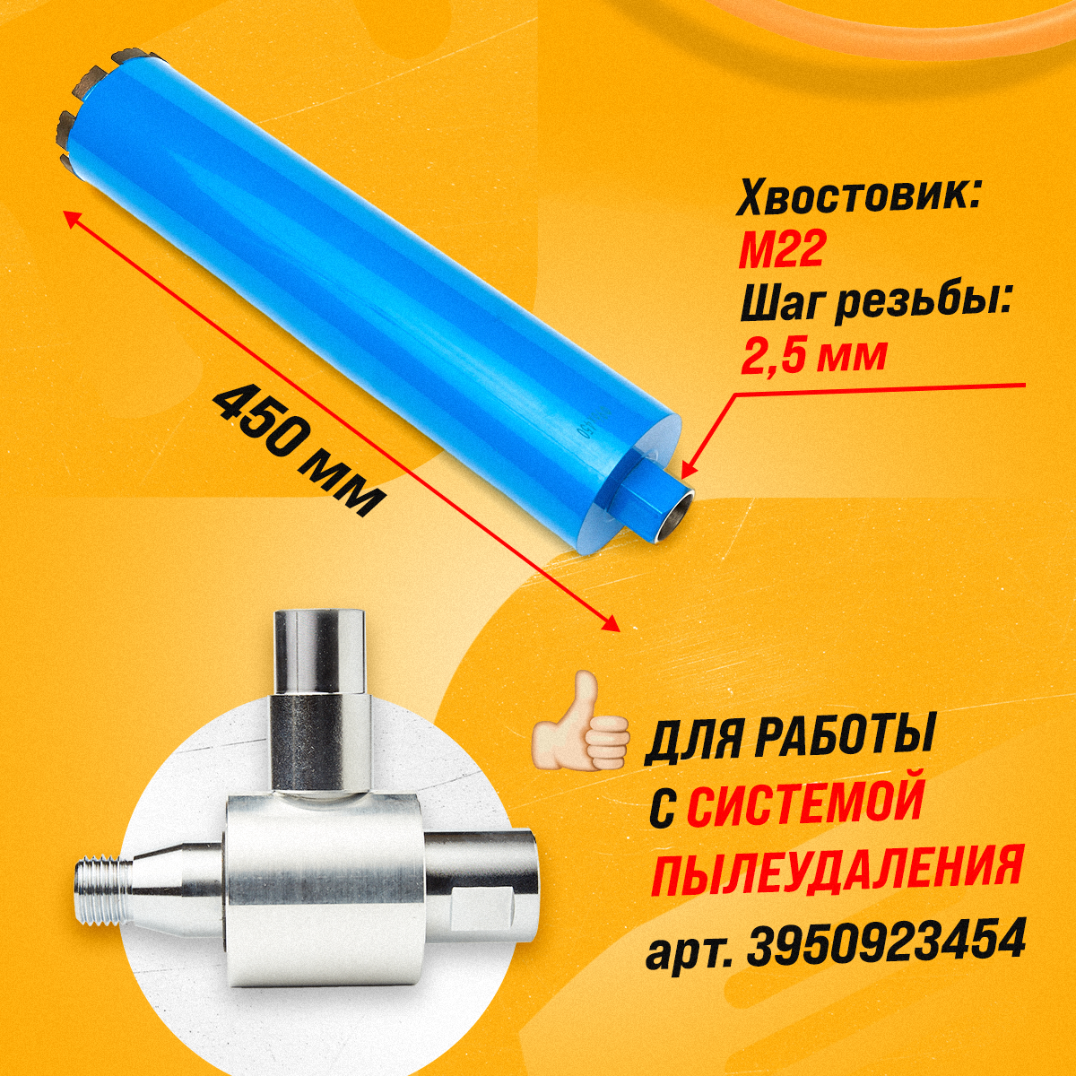 Коронка алмазная М22 152*450 мм по бетону, кирпичу для сухого и мокрого бурения