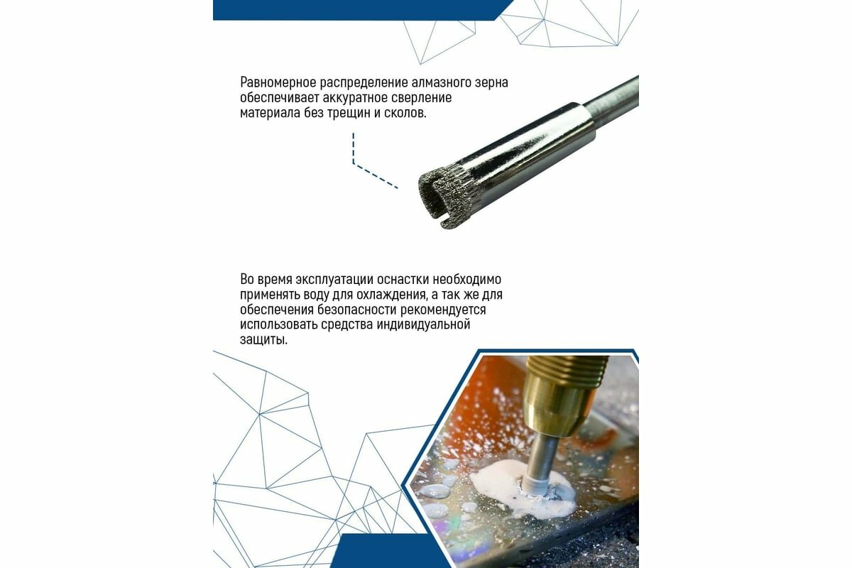 | Дополнительная информация | Рабочая кромка коронки имеет алмазное напыление, обеспечивающее высокую точность реза без трещин и сколов. Вертикальные пропилы в корпусе предотвращают деформацию коронки при нагреве во время работы. |