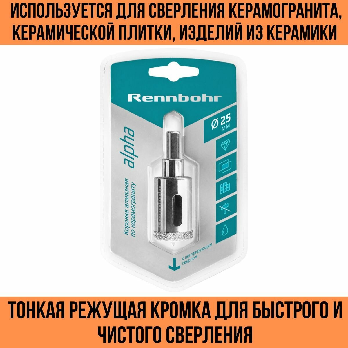| Дополнительная информация | Коронка алмазная RENNBOHR 25мм с центрирующим сверлом |