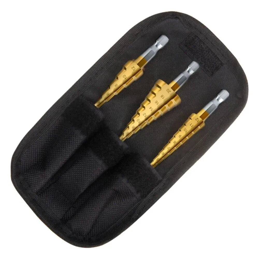 Купить Набор ступенчатых сверл по металлу 3-20 мм с титановым покрытием в чехле набор 3 шт