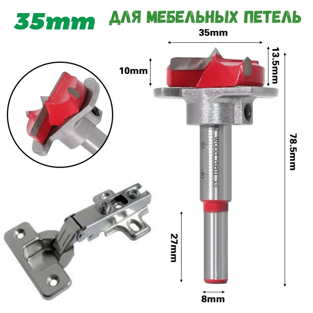 Сверло форстнера 35 мм с ограничителем для установки мебельных петель интересное: