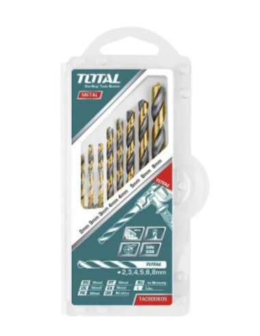 Купить Набор сверл по металлу HSS 8шт 2X49,3X61,3X61,4X75,4X75,5X86,6X93,8X117, для дрели Total арт. TACSD0801