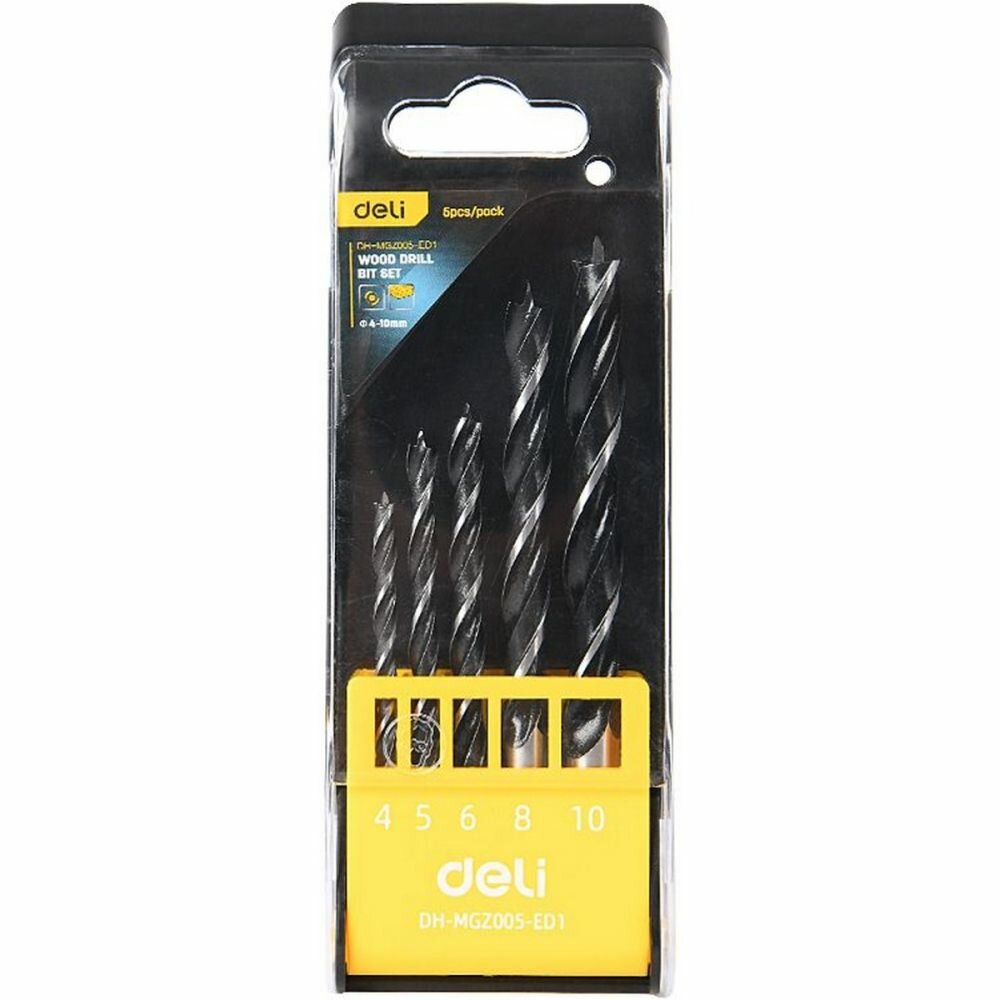 Набор оснастки Deli Набор сверл по дереву 5 шт (4/5/6/8/10 мм) Deli DH-MGZ005-ED1 сталь 45#, пласт.кейс