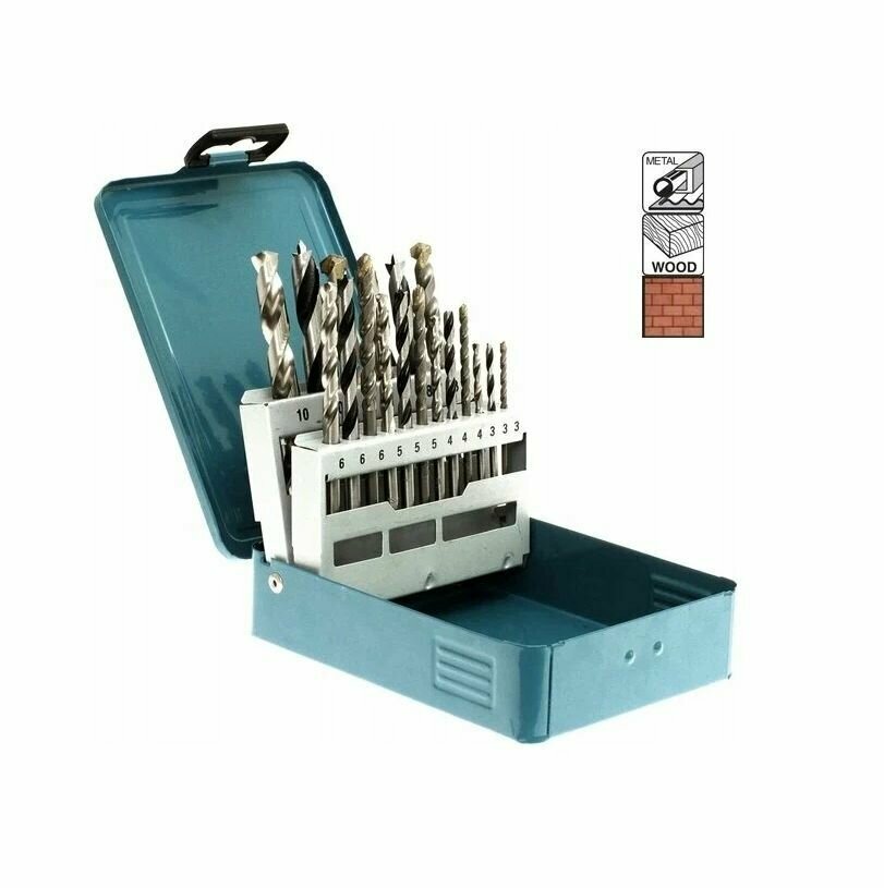 | Дополнительная информация | Комплектация: Сверла по дереву 6 шт.: 3, 4, 5, 6, 8, 10 мм; Сверла по бетону 6 шт.: 3, 4, 5, 6, 8, 10 мм; Сверла по металлу 6 шт.: 3, 4, 5, 6, 8, 10 мм. |