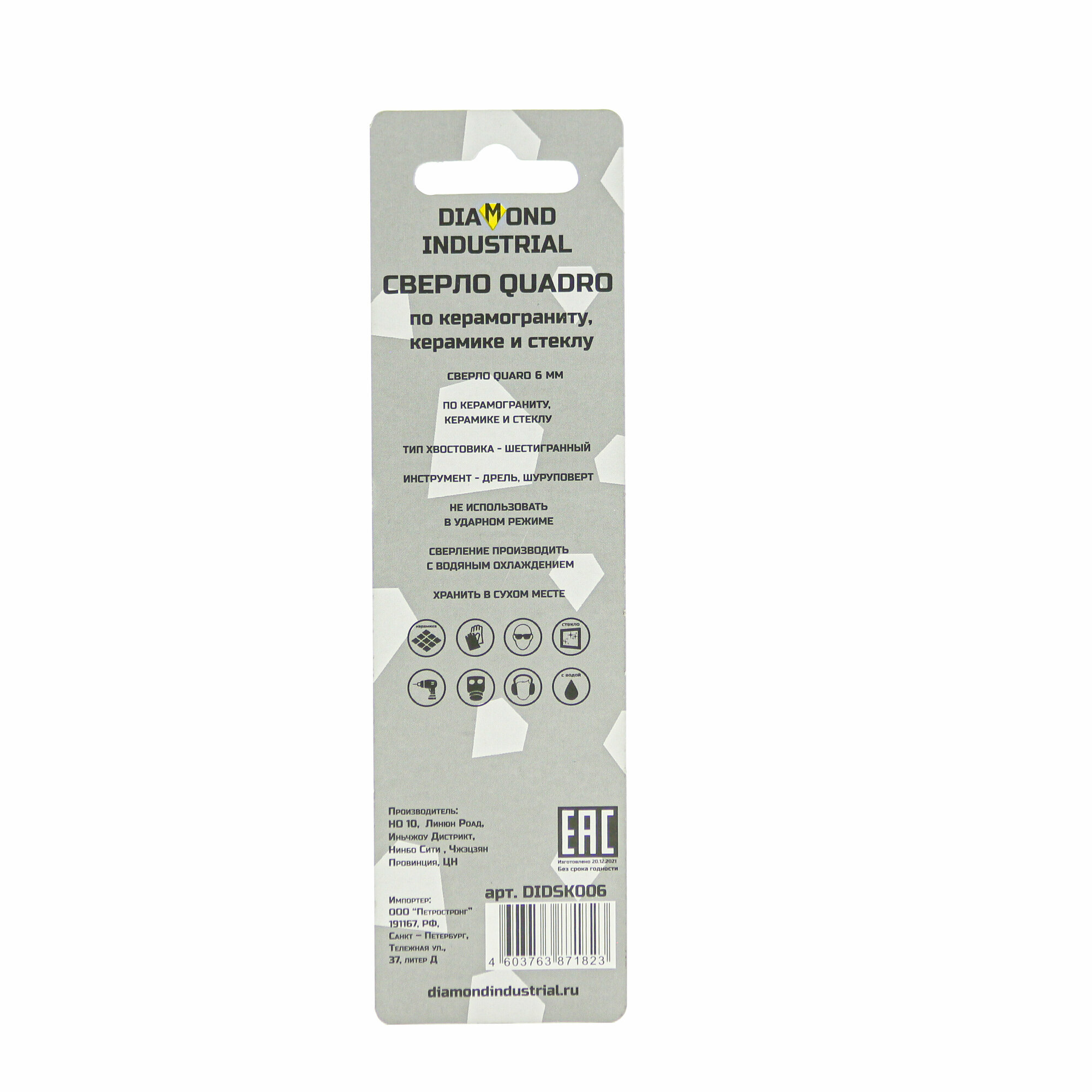 Сверло по керамограниту, стеклу и керамике квадро 6 мм Diamond Industrial