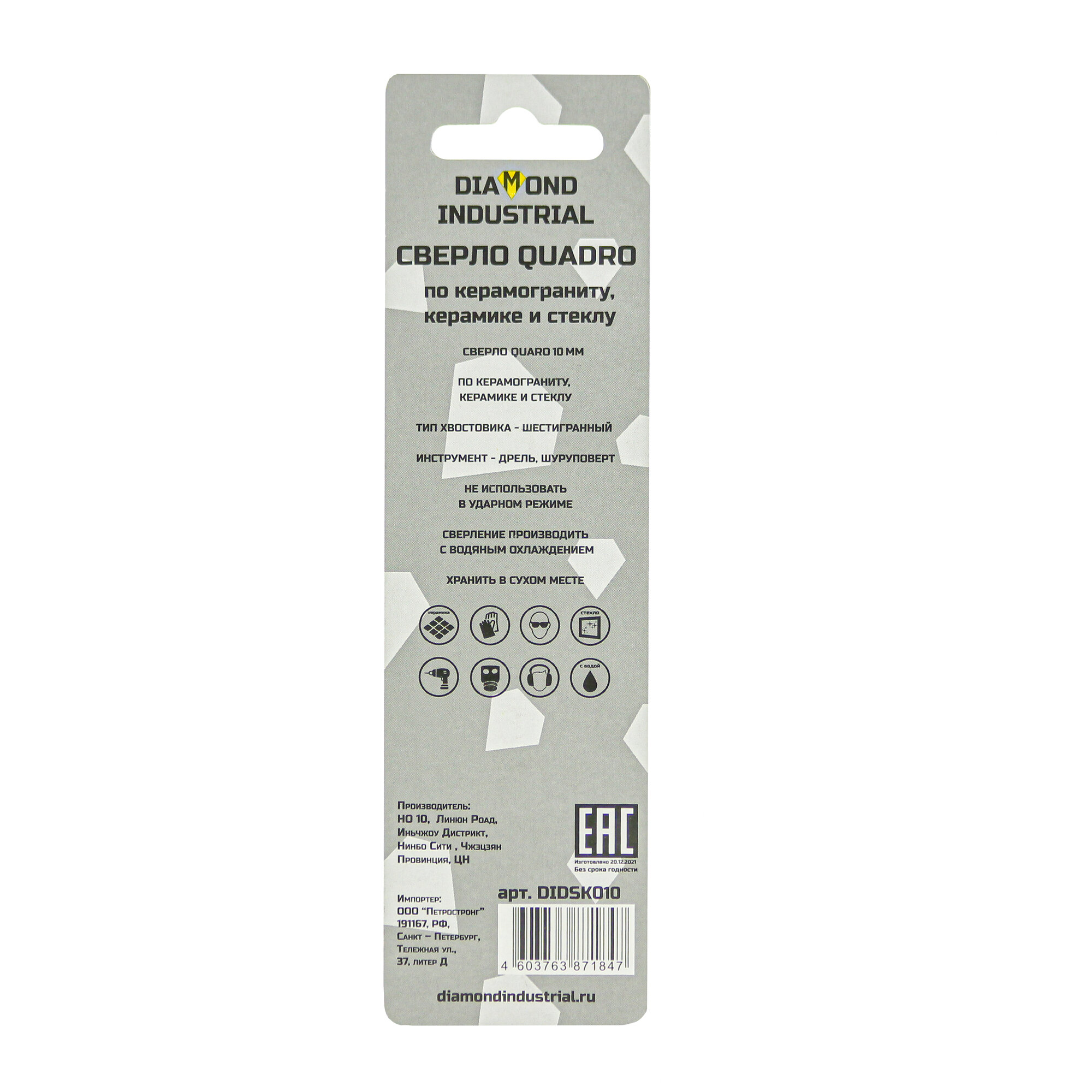 СохранитьСверло по керамограниту, стеклу и керамике квадро 10 мм Diamond Industrial интересное: