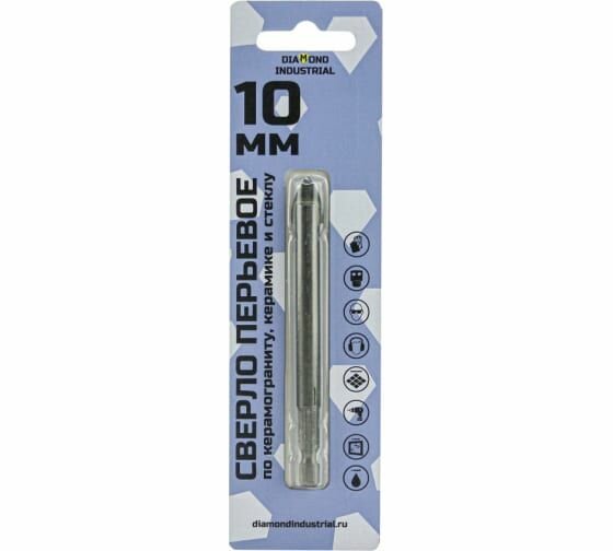Купить Сверло по керамограниту, керамике и стеклу 10 мм, 2 грани Diamond Industrial 3 шт