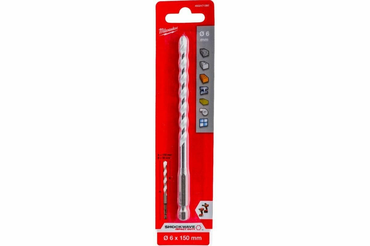 Сверло универсальное Milwaukee HEX 6x150 мм (1шт) интересное: