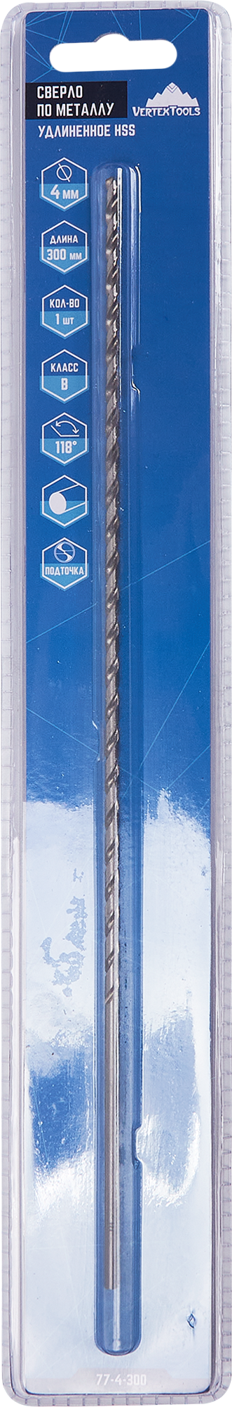 Купить Сверло спиральное по металлу удлиненное HSS Vertextools 4x300 мм
