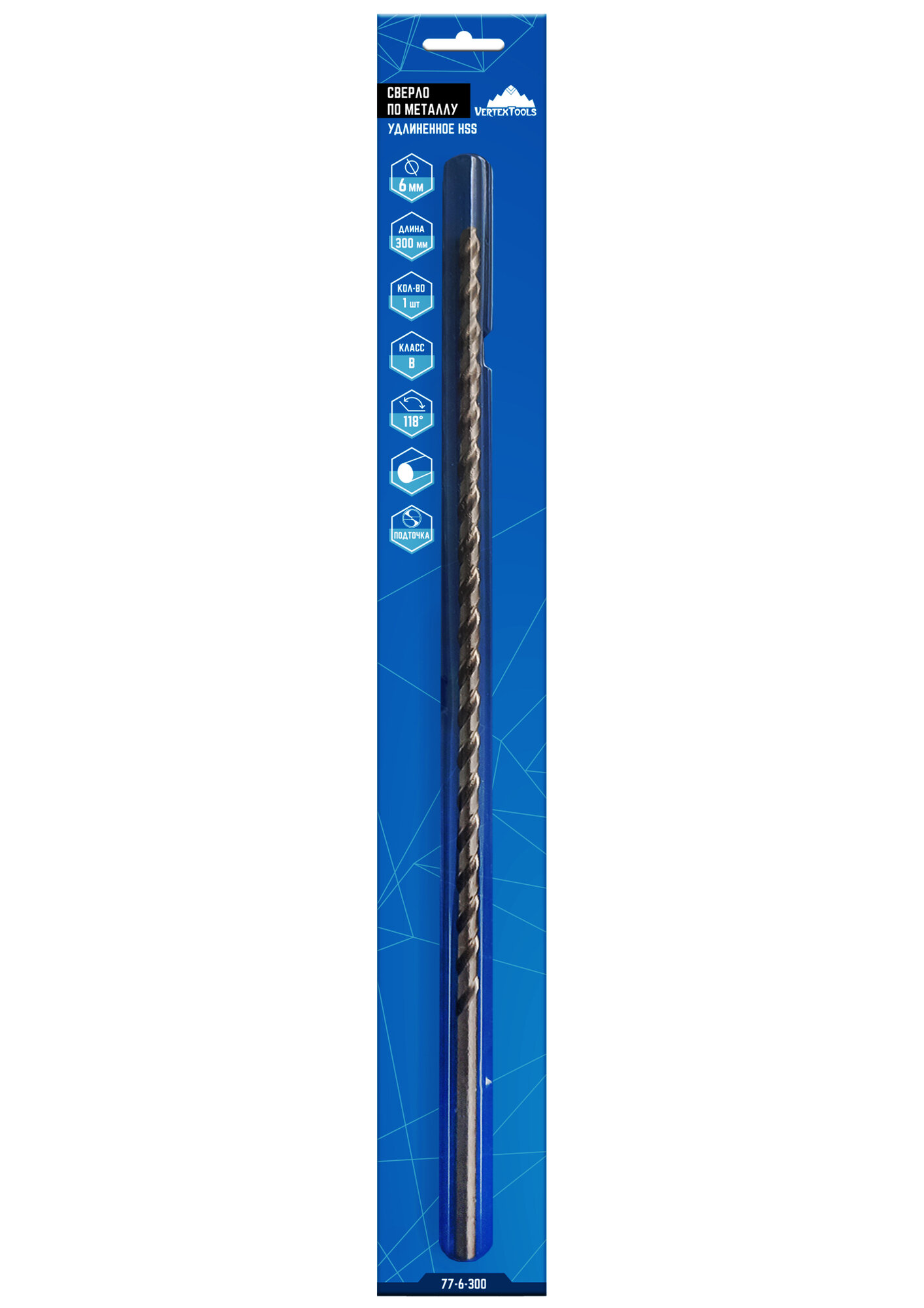 Купить Сверло по металлу VertexTools удлинённое HSS 6х300мм