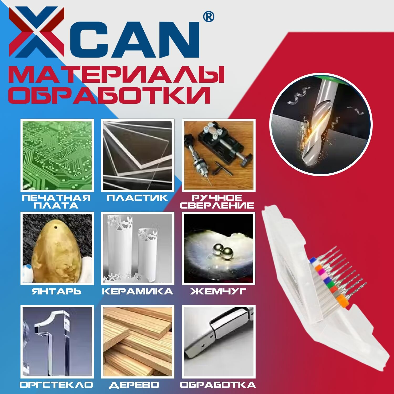 Сверло XCAN для печатных плат 0,1-1,0 мм, 1BOX(10pcs), 0.1-1.0mm Set