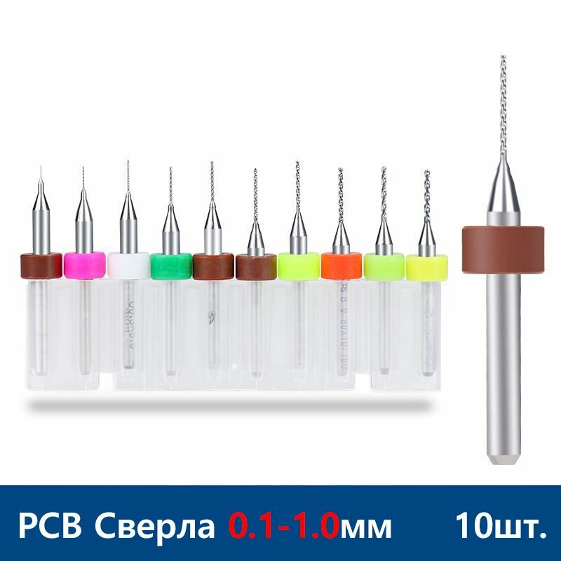 Набор сверл спиральных XCAN для печатных плат 0,1 - 1,0 мм, 10 шт. интересное: