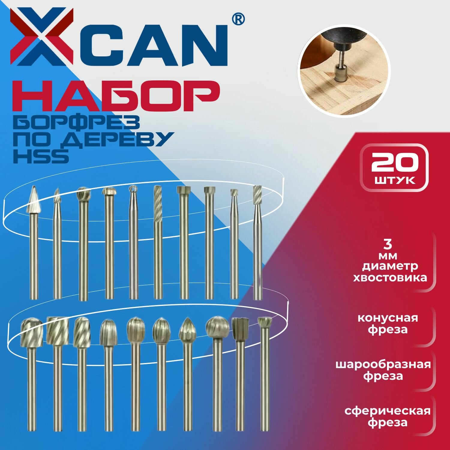 Набор борфрез по дереву XCAN HSS хвостовик 3мм, 20 шт. интересное: