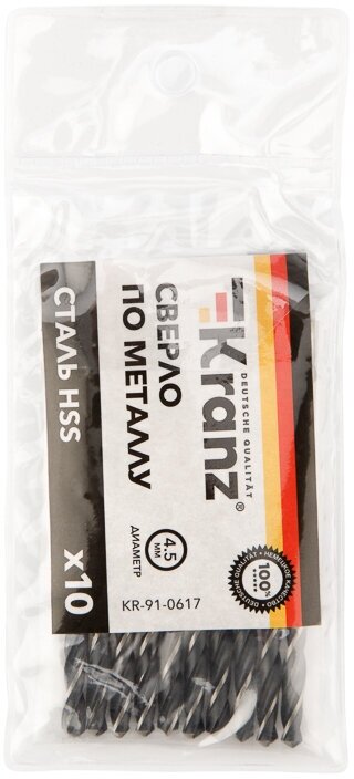 Купить Сверло KRANZ по металлу 4,5 мм повышенной прочности с углом заточки 118 градусов HSS, 10 шт. в упаковке, DIN 338