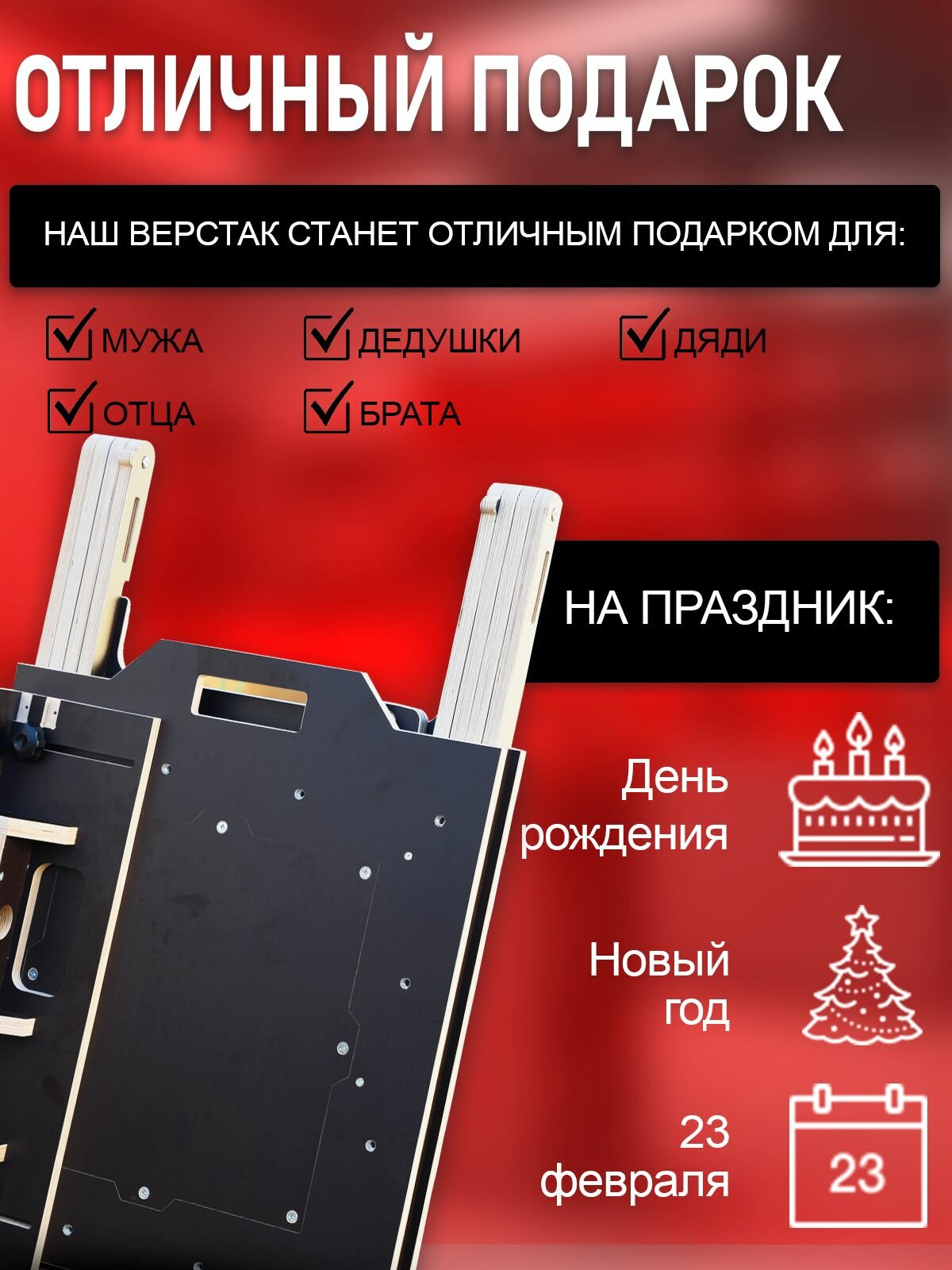 Ниже Вы можете прочитать отзывы на Верстак складной стандартный, универсальный, многофункциональный, распиловочный, столярный стол для гаража, ознакомится с подробными характеристиками, посмотреть интересные обзоры и фотографии на Верстак складной стандартный, универсальный, многофункциональный, распиловочный, столярный стол для гаража.