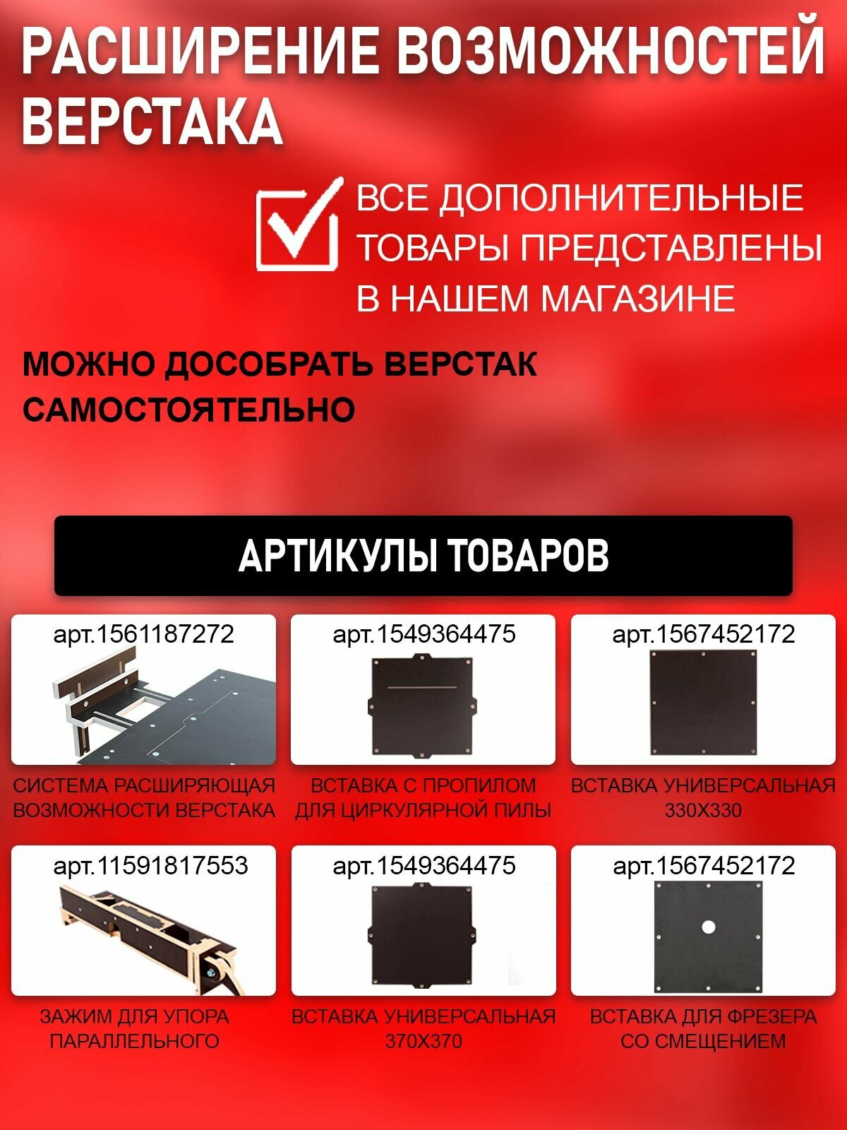 | Комплектующие к верстаку | упор |