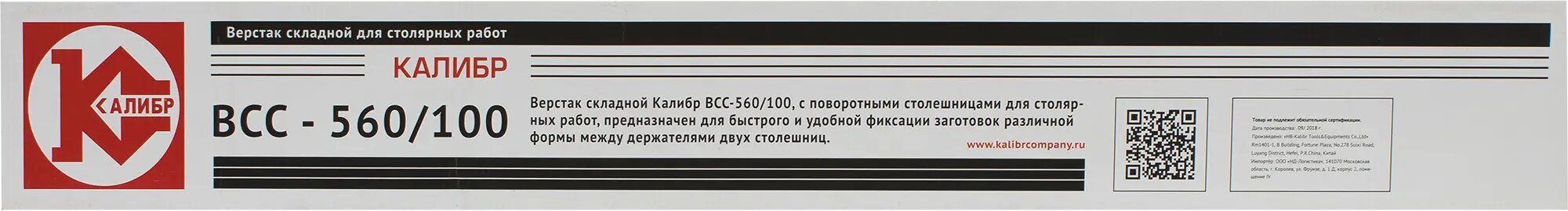 | Дополнительная информация | Верстак складной Калибр ВСС-560/100, максимальная нагрузка 100 кг |