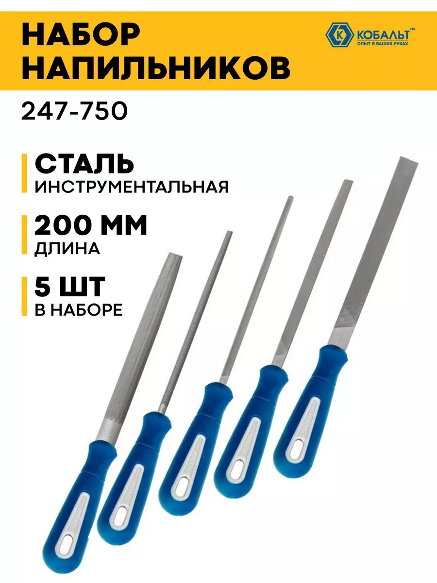 Кобальт Набор напильников двухкомпонентная рукоятка, № 2, 200 мм 5 шт. блистер 247-750 интересное: