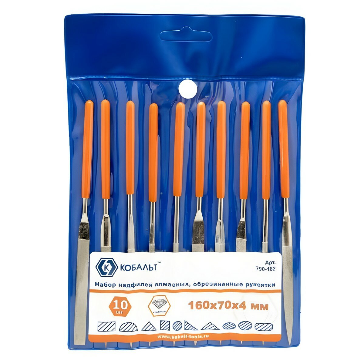 Набор кобальт надфилей алмазных, 160х70х4 мм, обрезиненные рукоятки (10 шт.) чехол 790-182