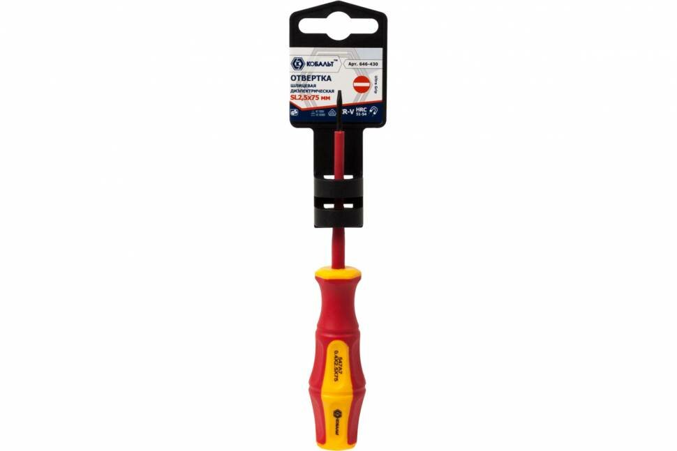Отвертка диэлектрическая кобальт Ultra Grip SL 2,5 х 75 мм CR-V, двухкомпонентная рукоятка (1 шт.) подвес интересное: