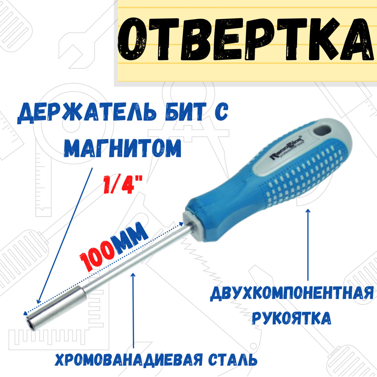 Отвёртка-держатель бит 1/4, 100 мм РемоКолор 33-0-730