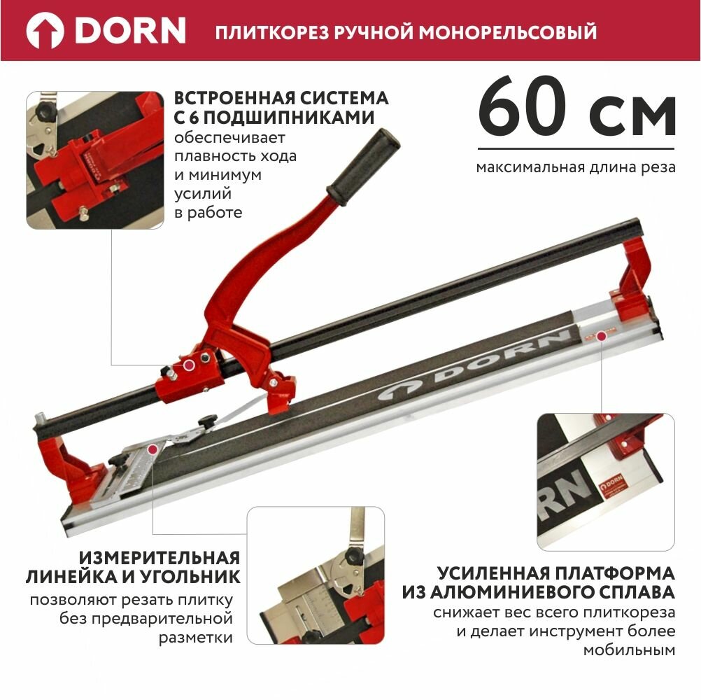 Плиткорез монорельсовый DTC PROFI ручной 60 см, 1 шт. в заказе интересное: