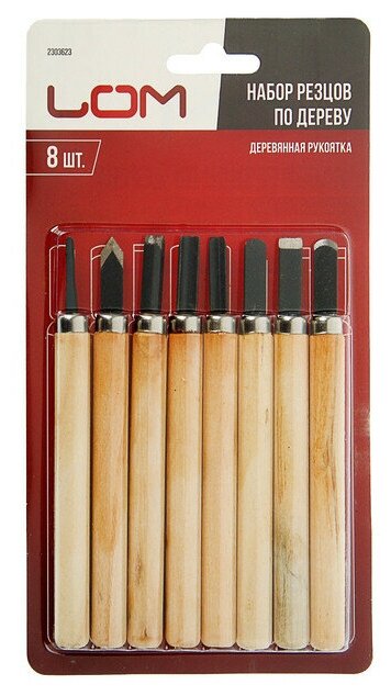 Купить Набор резцов по дереву LOM, деревянная рукоятка, 8 шт.