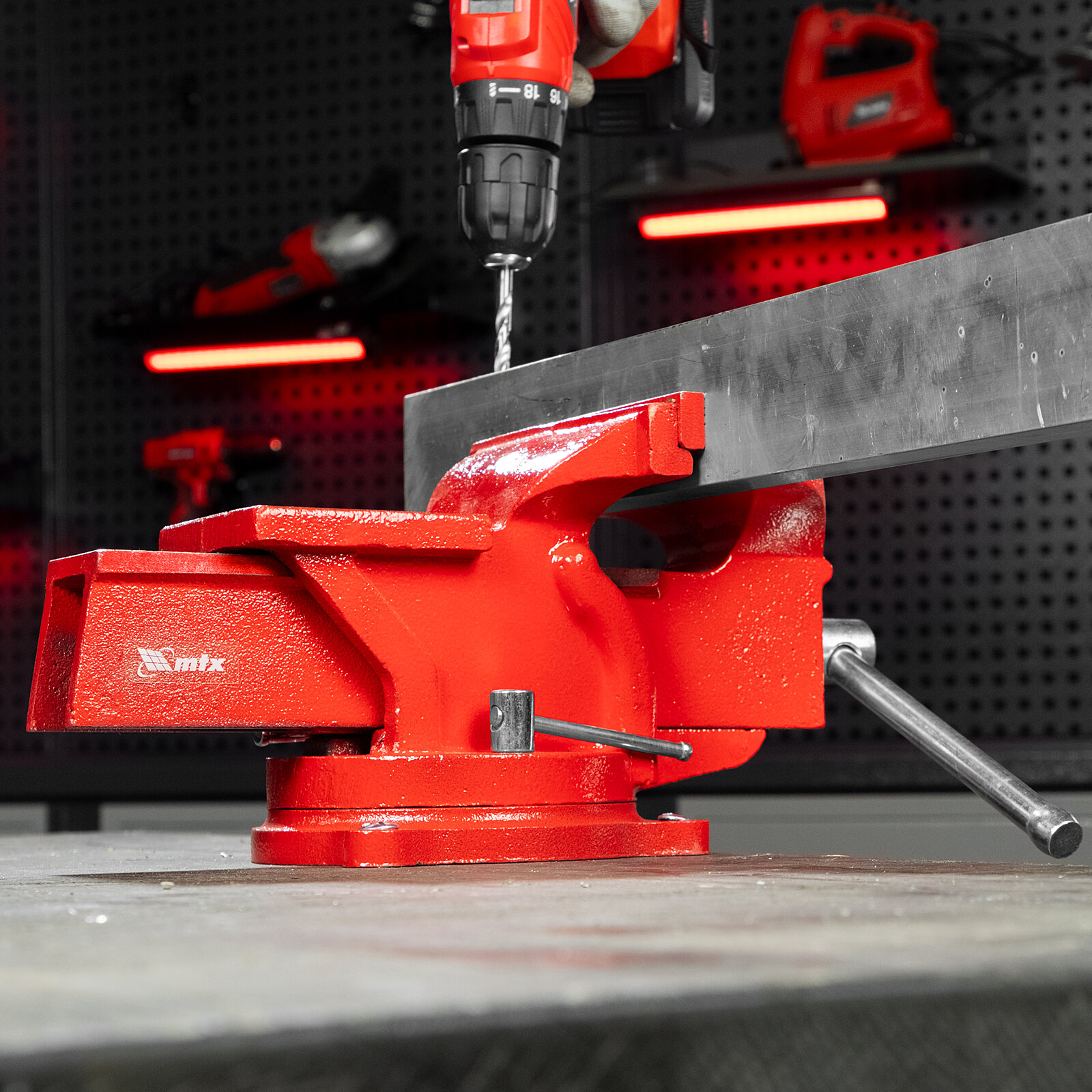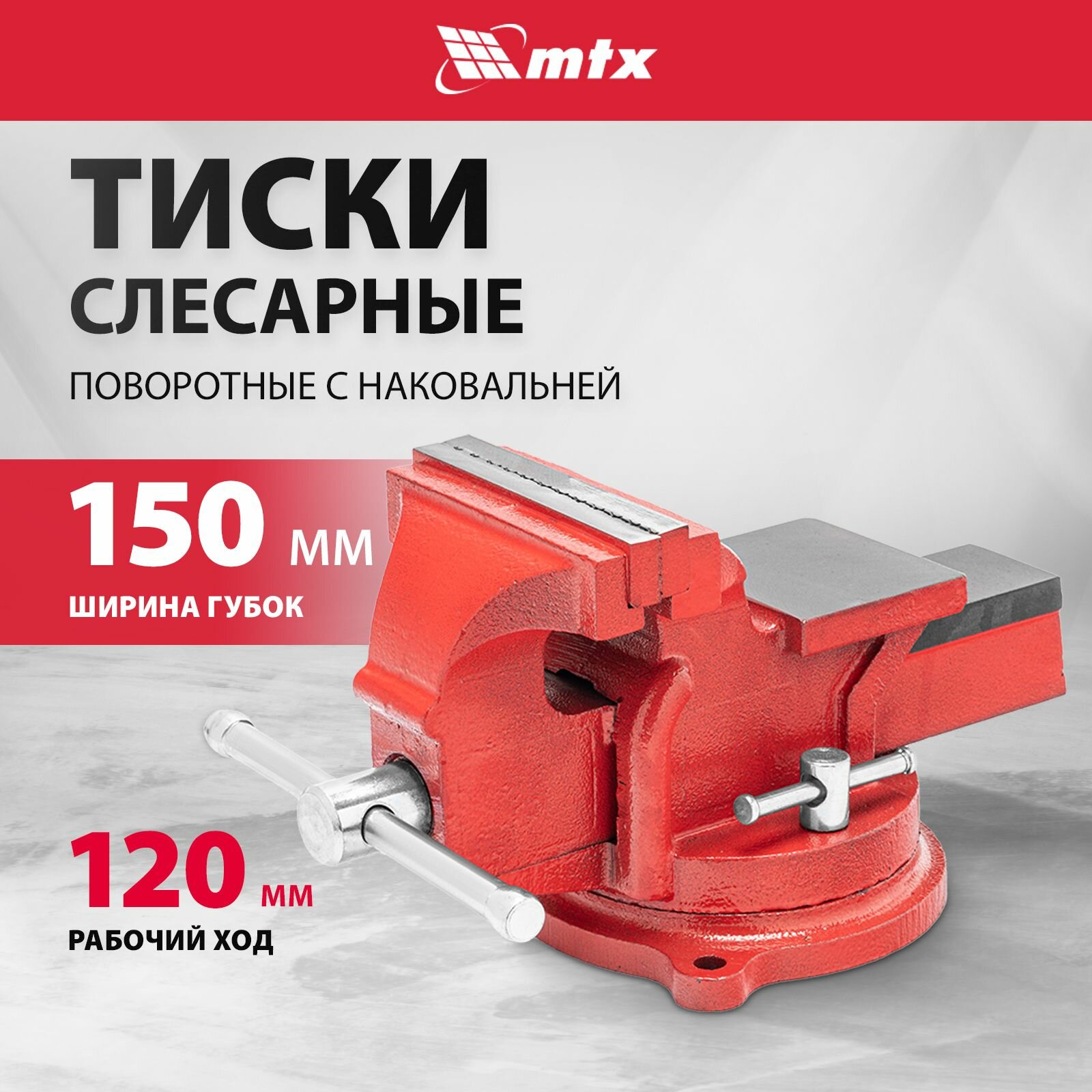 Тиски слесарные поворотные MTX 150 мм, с наковальней 18637 интересное: