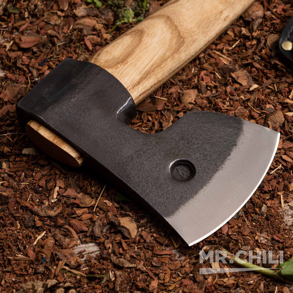 Топор японский MIZUNO 010-002 (сталь Аогами), рукоять дуб, кожаный чехол