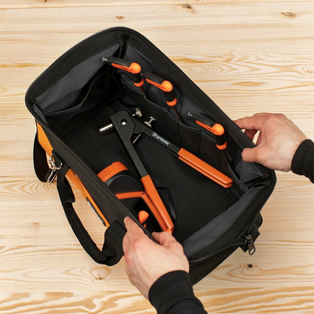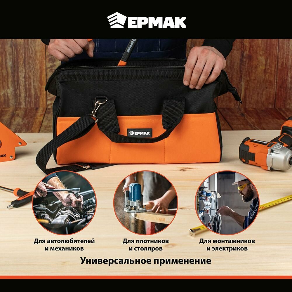 Ниже Вы можете прочитать отзывы на Сумка для инструмента ермак, 20 карманов, 40x20x25 см, оксфорд, ознакомится с подробными характеристиками, посмотреть интересные обзоры и фотографии на Сумка для инструмента ермак, 20 карманов, 40x20x25 см, оксфорд.