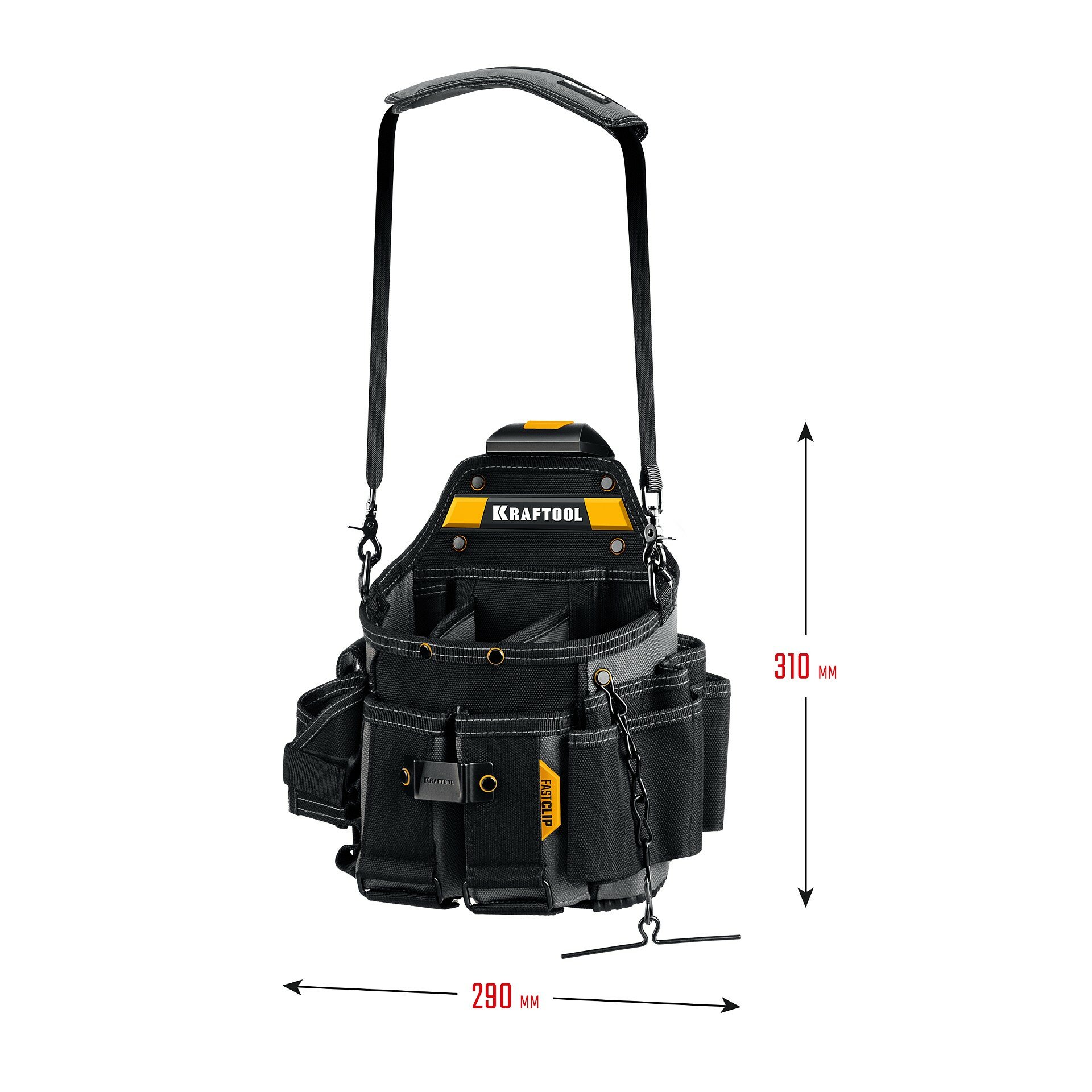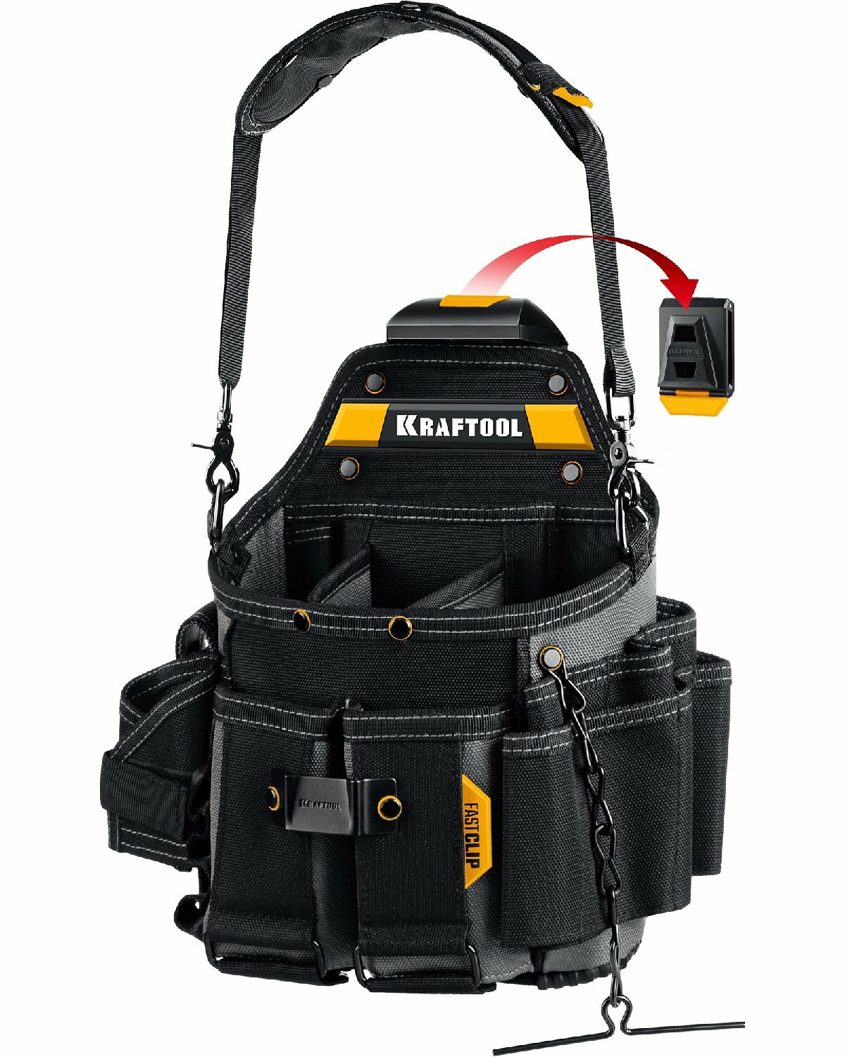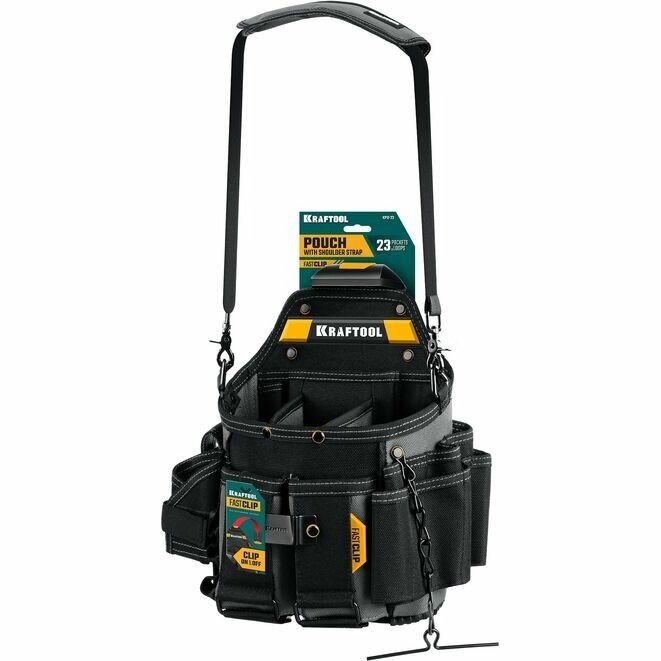 KRAFTOOL KPB-23 Поясная сумка 290x310 мм с быстросъёмным креплением FastClip, плечевой ремень, 23 кармана и петли 38766 интересное: