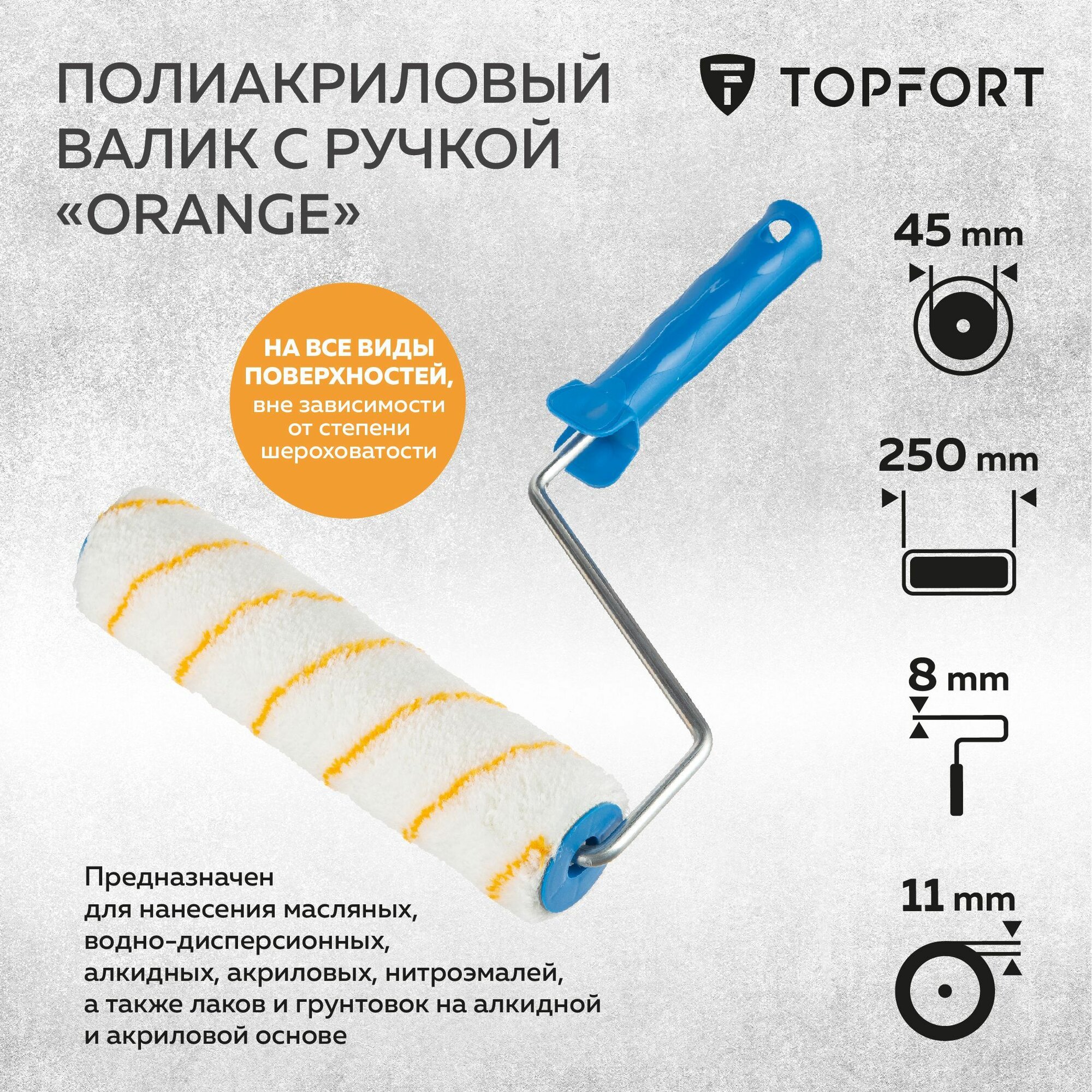 Валик малярный с ручкой TOPFORT 250 мм полиакрил ворс 11 мм интересное: