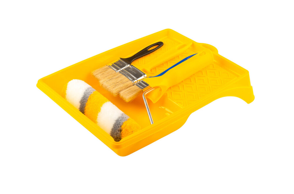 Ванночка для краски Акор Русский Маляр-180 с валиком 180 мм и 3 кистями